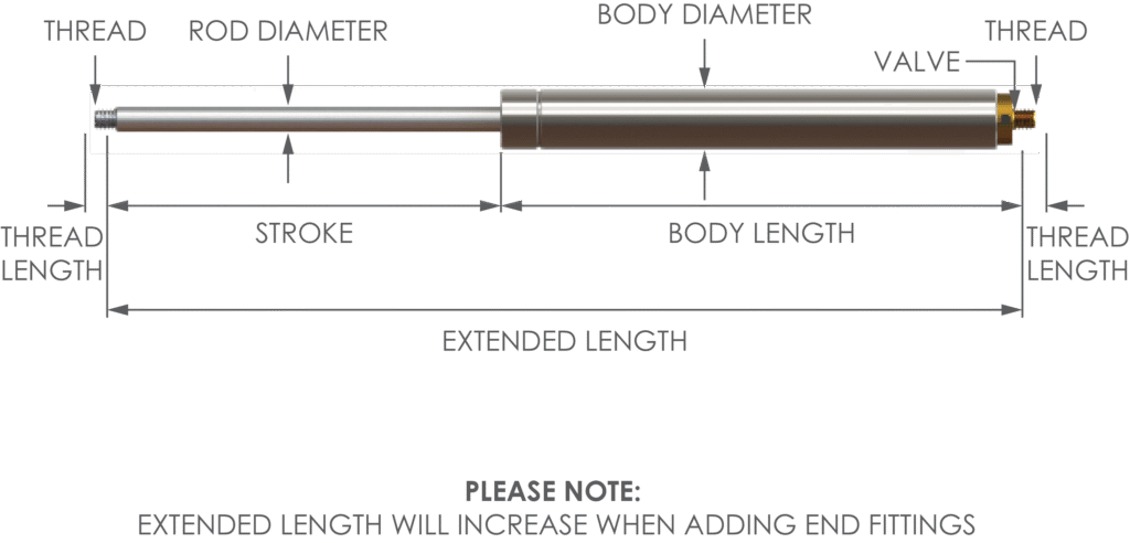 When it comes to replacing your gas strut, it’s important to know the measurements of your current gas strut so we can help find the perfect match for you.