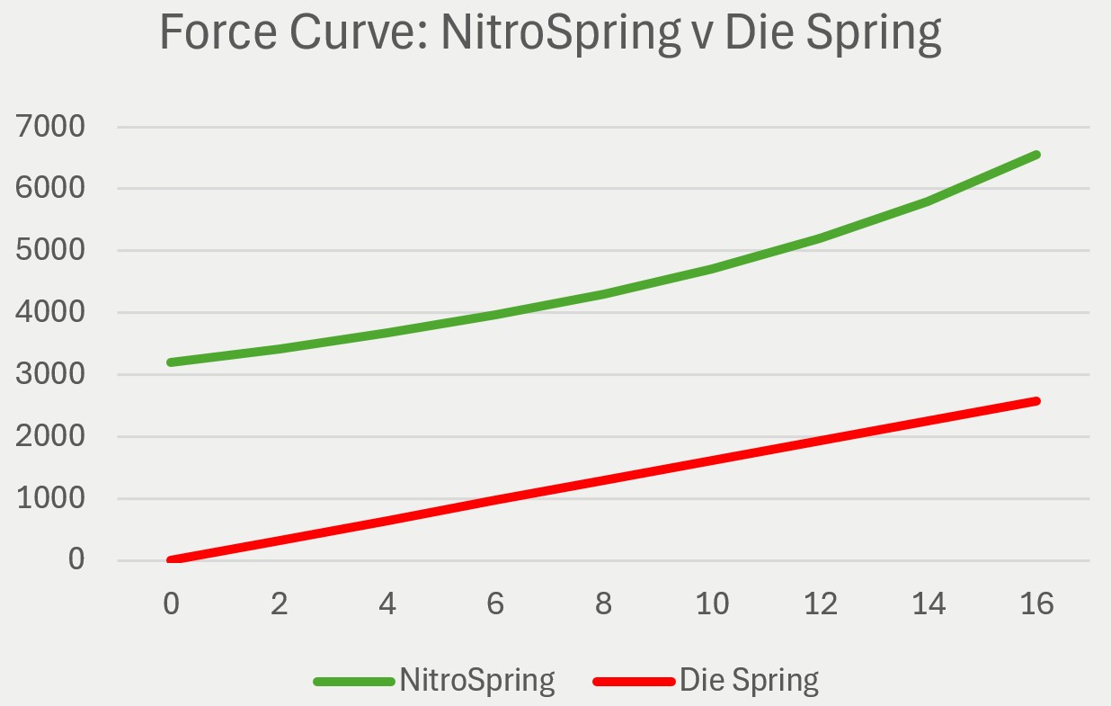 Each NitroSpring is pre-charged, providing force immediately upon contact.
