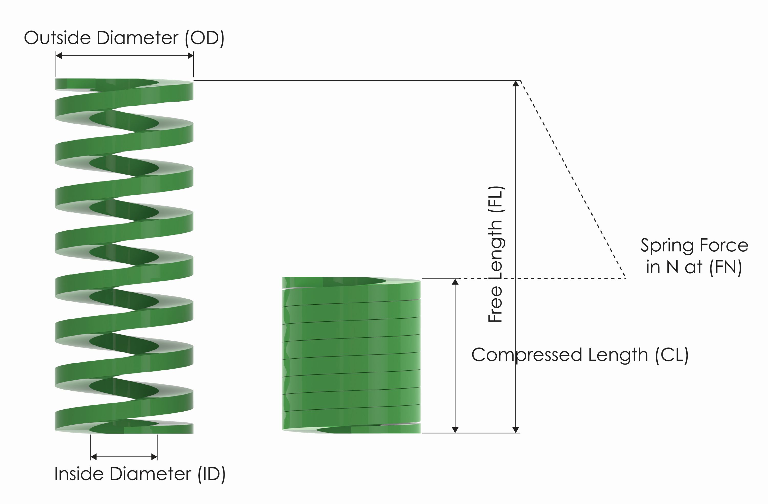 Our NG0, NG1, and NG2 NitroSpring ranges were built to be direct replacements for die springs. Determine what force, diameters, lengths and travel you need to find a suitable NitroSpring for your application. Alternatively, get in touch today or fill out our NitroSpring enquiry form.